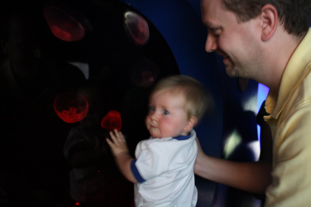 Well now that James is a big eight month old boy E and I decided to go back to the aquarium yesterday (yea for comp days!). We strategically planned the event in the middle of the afternoon, between his two naps and it was a great escape from the unbearably hot afternoon temps.