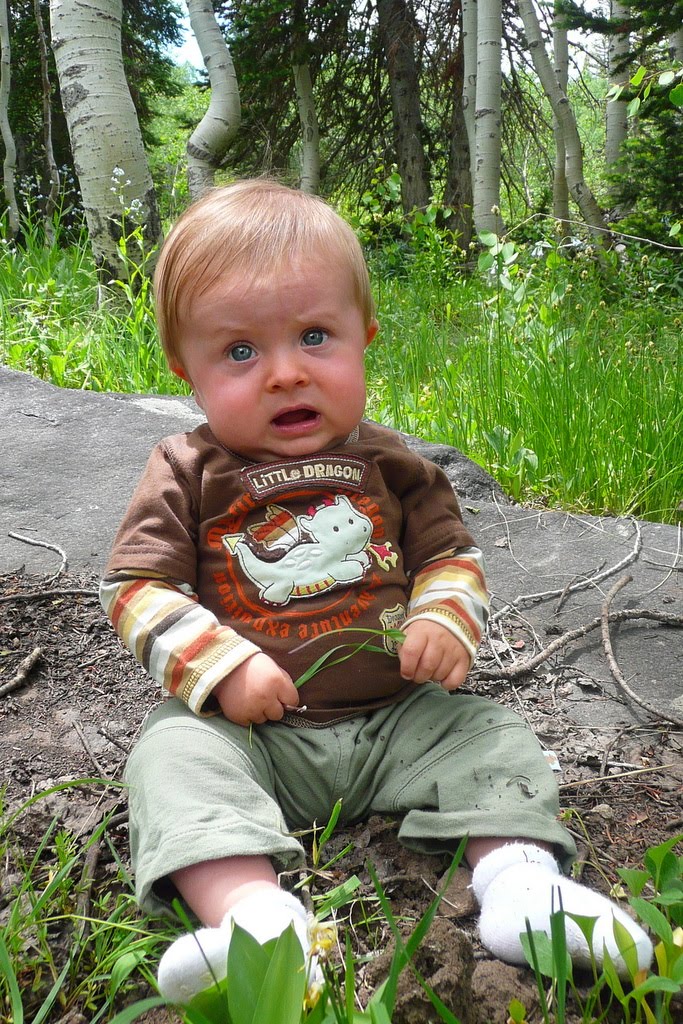 James happily looked around the meadow, tasted some grass and dandelions, and saw my cousin Taylor again. He's been away at college so the last time they met, James was only one month old.