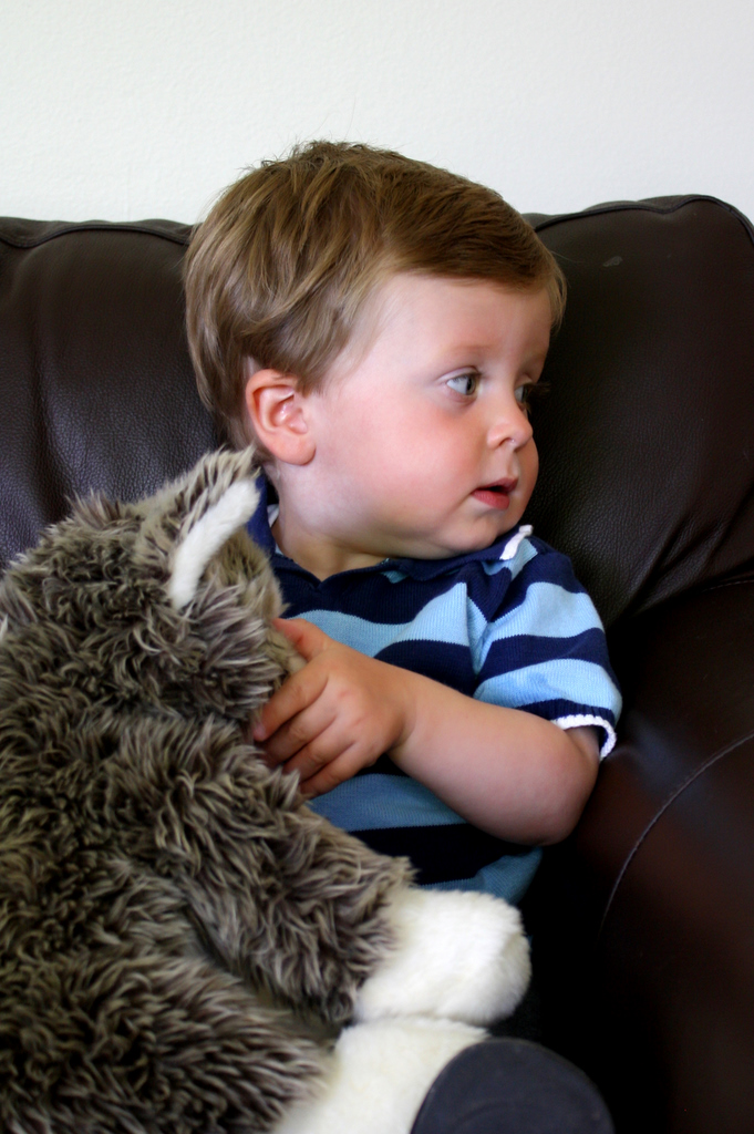 I asked him to snuggle Wolfy and this is what I got. Full-on snuggles.